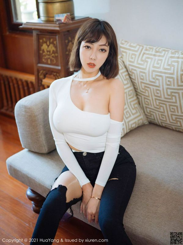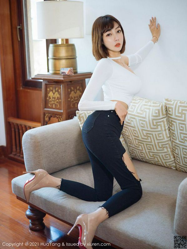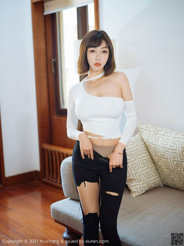 HuaYang花漾写真 VOL.414 果儿Victoria 破洞牛仔裤与朦胧丝袜